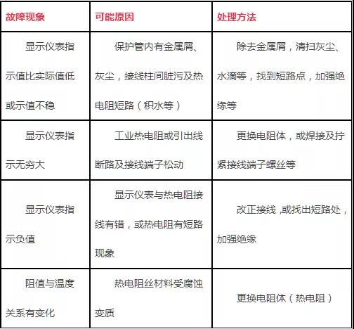 热电阻温度测量系统运行中的常见故障和处理方法如下: