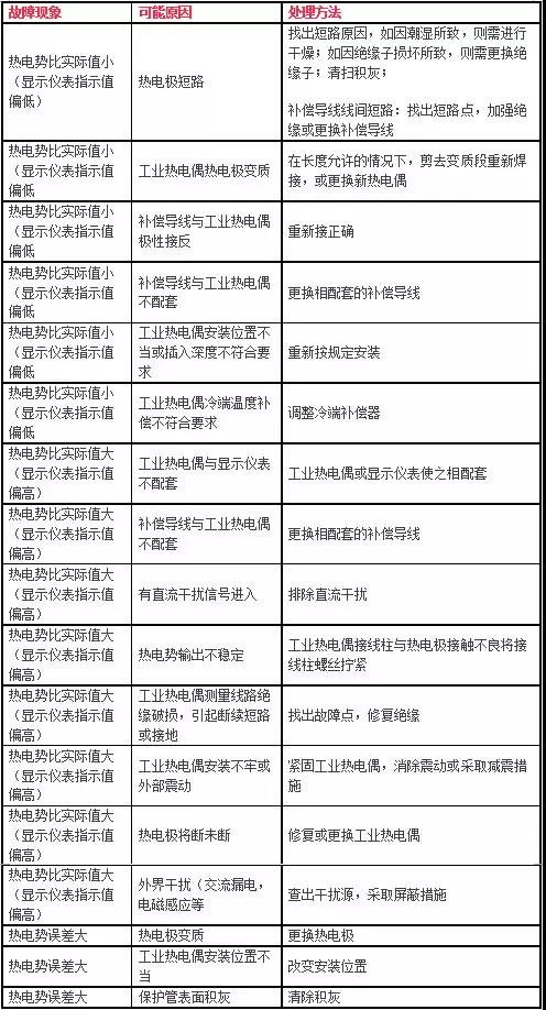 工业热电偶的常见故障和处理方法: