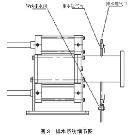 如图3所示,管线排水阀和排水进气阀由两个球阀构成,通过对不同口径管道采用不同尺寸的球阀,在保证排水效率的同时,不会对流量计检定造成影响。