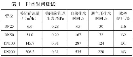 采用高效排水装置后排水时间和效率测试数据如表1所示。