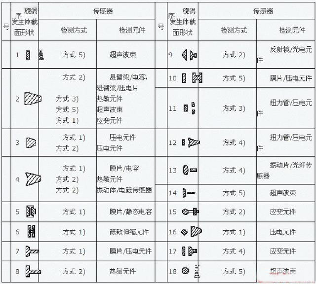 根据这5种检测方法,不同检测技术(热,超声,应力,应变,电容,电磁,光电,光纤等)可以构建成不同类型的VSF,如表1所示。表1涡流发生器列表和检测方法